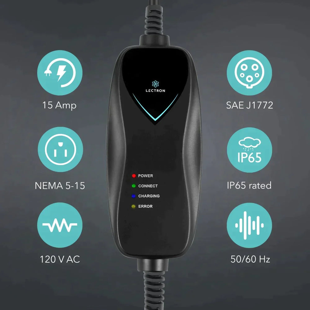 LEVEL 1 CHARGING: The Lectron Level 1 Charger lets you quickly charge your EV with a standard 110V outlet; You get 15 amps and 1.65 kW of power for the standard full-charge time for your car, at home or at work.